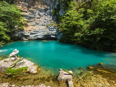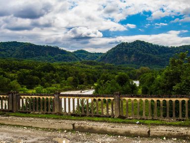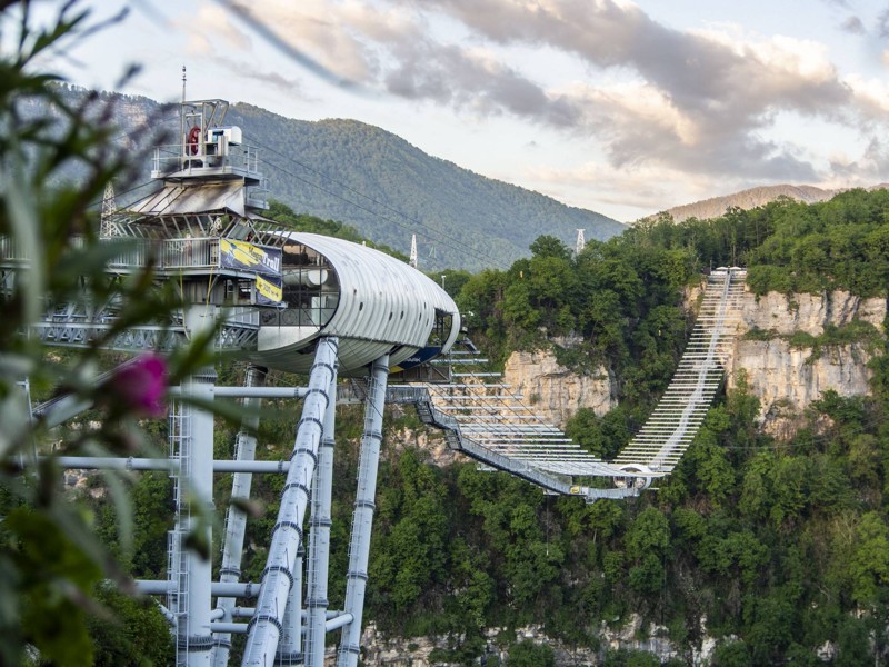 Ахштырское ущелье. Вы полюбуетесь живописными видами и оцените самый длинный мост в России, расположенный на высоте 200 метров.
